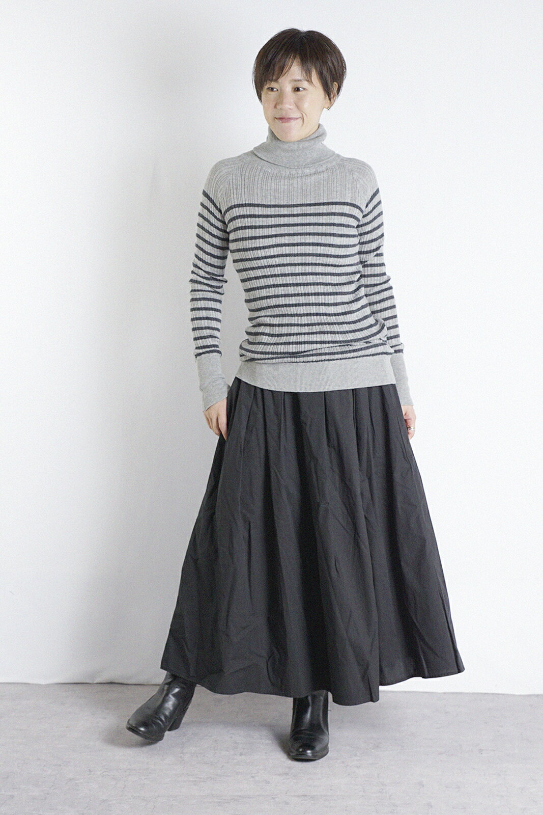 広がりすぎないシルエットは 大人っぽくさらりと穿きこなせ、気分も軽やかにしてくれる一着です。