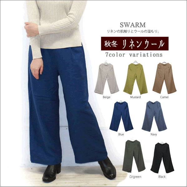 【お得なクーポン配信】ウールワイドパンツ リネンウール 幅広 ボトムス 人気 大人 オシャレリネンワンピースワイドパンツ レディース ワイドパンツ デニム ワイドパンツ レディース 秋冬 母の日 ギフト