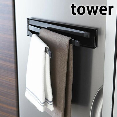 布巾ハンガー 山崎実業 YAMAZAKI マグネット布巾ハンガー tower ホワイト ブラック マグネット 布巾掛け ディッシュクロス 冷蔵庫 スチール コンパクト スタイリッシュ シンプル モノトーン